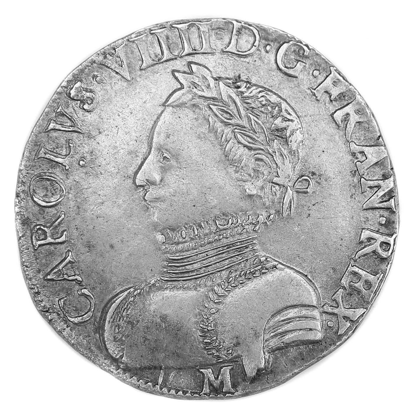 CAROLVS.VIII.D.G.FRAN.REX. M Charles VIIII par la grâce de Dieu roi des Francs Buste du roi, à droite, cuirassé
