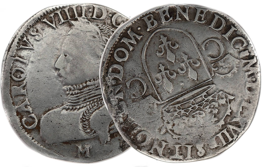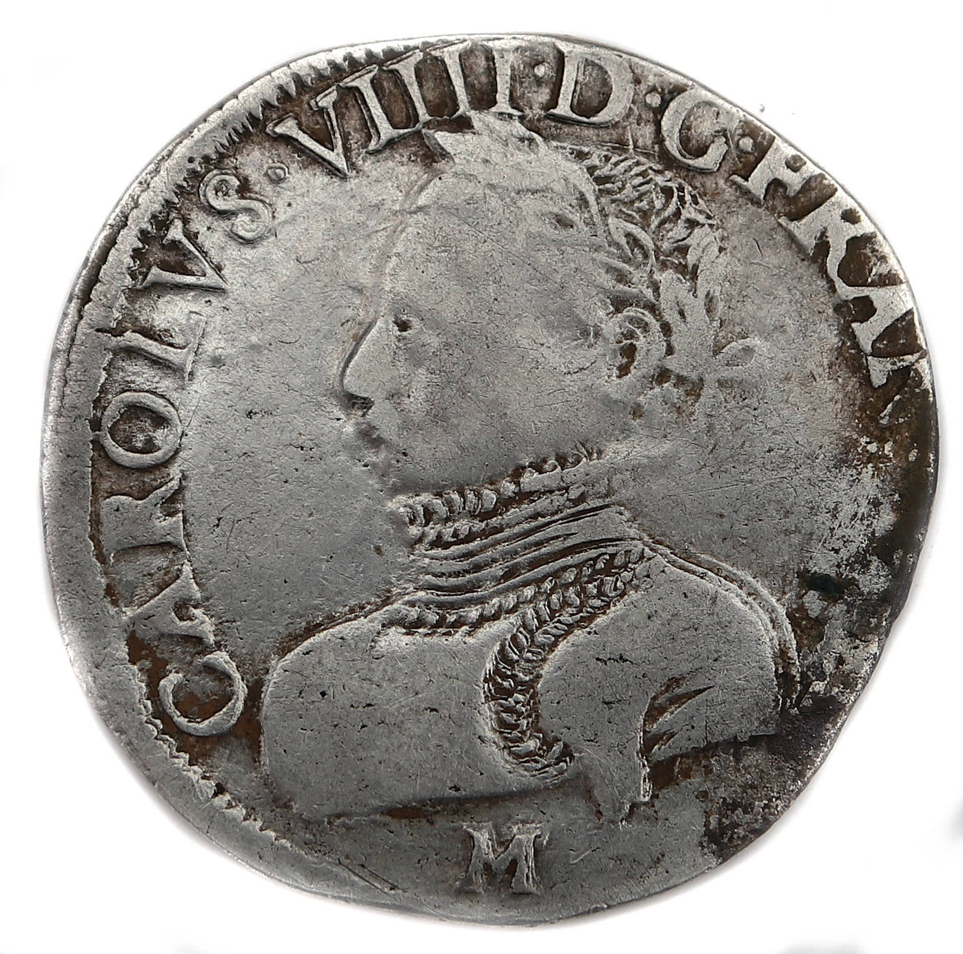 Lettre d'atelier : M (au droit sous le buste) Point secret : 5éme (au droit) Millésime : MDLXVII Chiffre de frappe connu : 266 679ex. (avec 1/2 testons) |