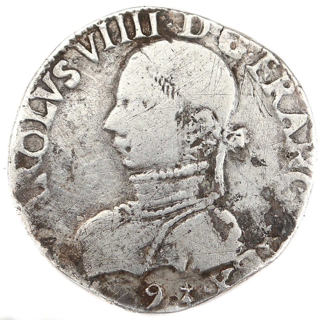 CAROLVS.VIIII.D.G.FRANCO.REX. dif. 9 Buste du roi, à droite, cuirassé