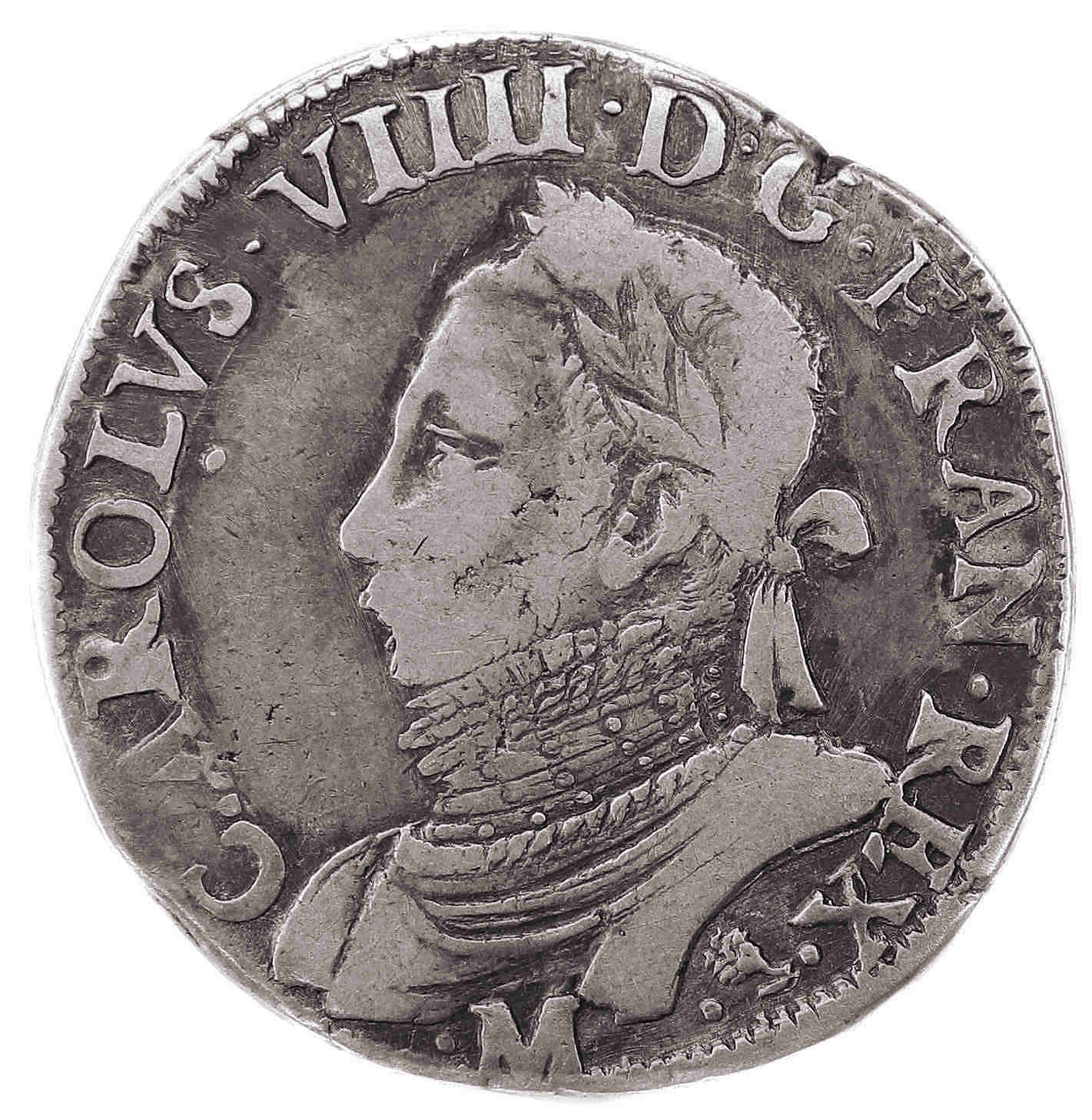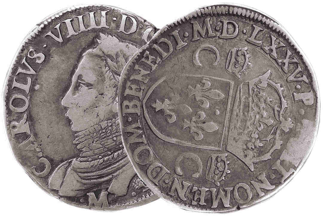 Lettre d'atelier : M(au droit sous le buste) Point secret : 5éme (au droit et au revers) Millésime : MDLXXV Chiffre de frappe connu : 349 987 ex. (avec 1/2 testons) |