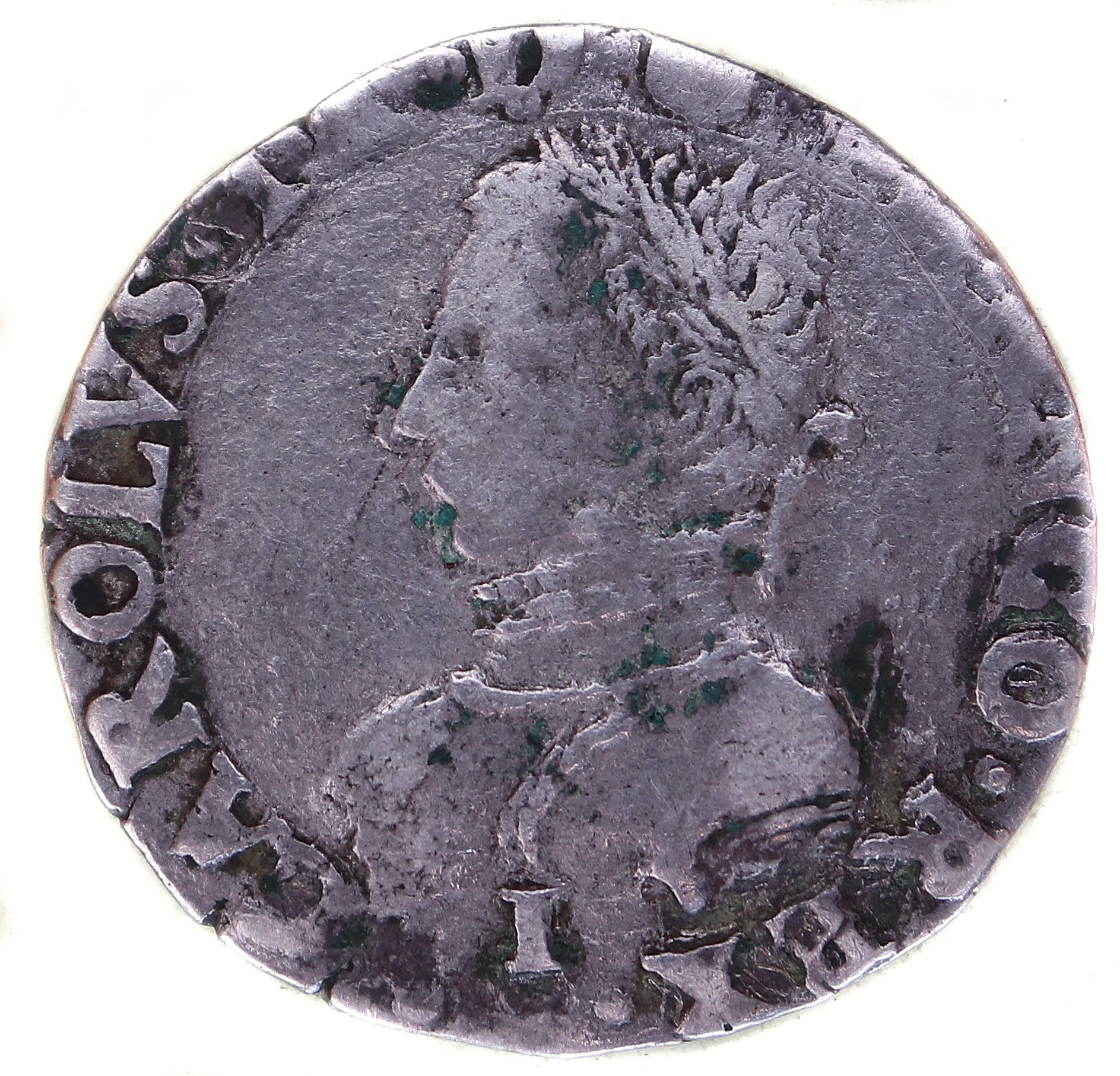 .CAROLVS.IX.D.G.FRANCO.REX. I Charles IX par la grâce de Dieu roi des Francs Buste du roi, à droite, cuirassé