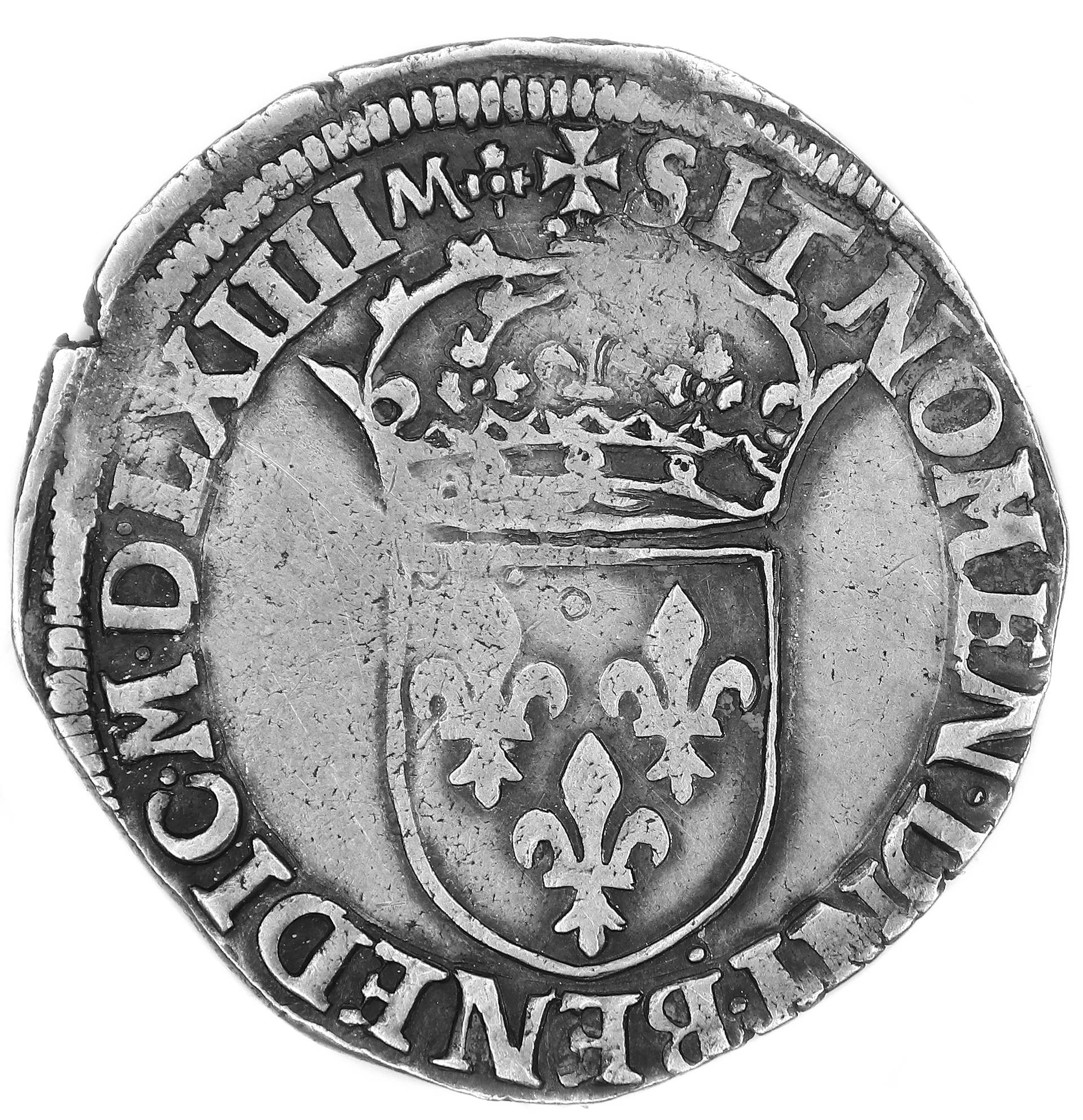+SIT.NOMEN.DNI.BENEDIC.MDLXIIII(dif)(dif) Beni soit le nom du seigneur Ecu de France couronné |