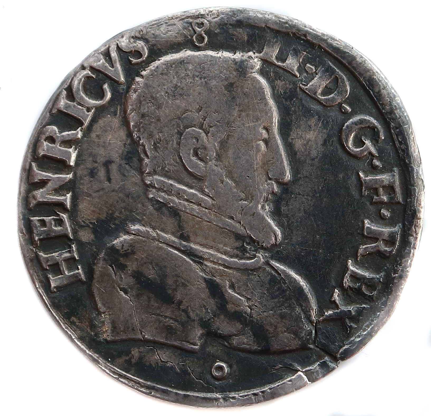 HENRICVS.II..D.G.F.REX Henri II par la grâce de Dieu roi des Francs Buste du roi, tête nue, cuirassé à droite |