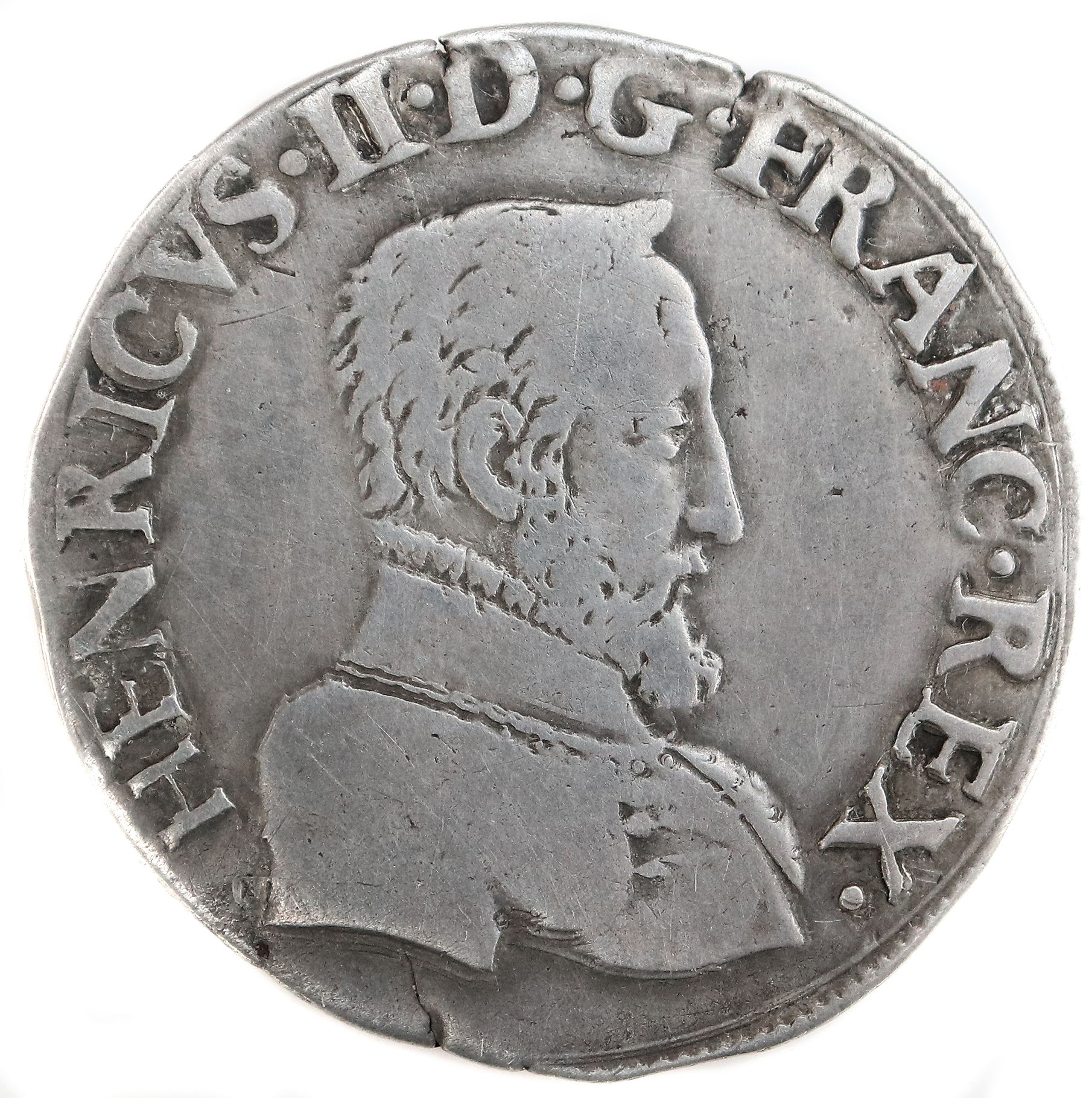 HENRICVS.II..DG.FRANC.REX. Henri II par la grâce de Dieu roi des Francs Buste du roi, tête nue, cuirassé à droite |
