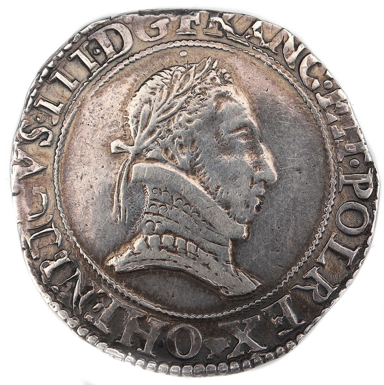 .HENRICVS III.D.G.FRANC.ET.POL REX.(dif)O Henri III par la grâce de Dieu roi des Francs et des Polonais. Buste lauré et cuirassé à