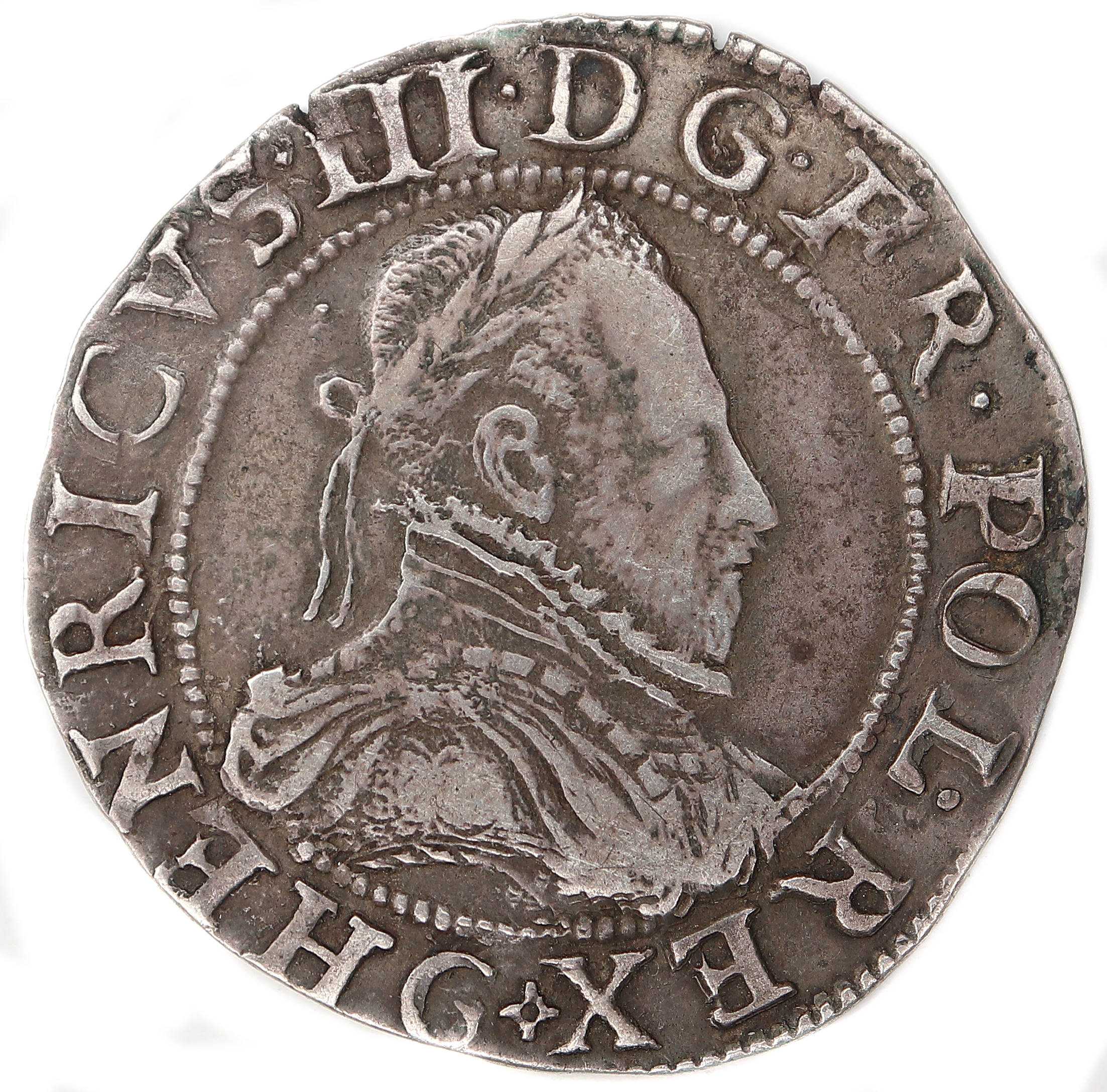 III.DG.FR..POL.REX(dif).G Henri III par la grâce de Dieu roi des Francs et des Polonais Buste lauré et cuirassé, au col