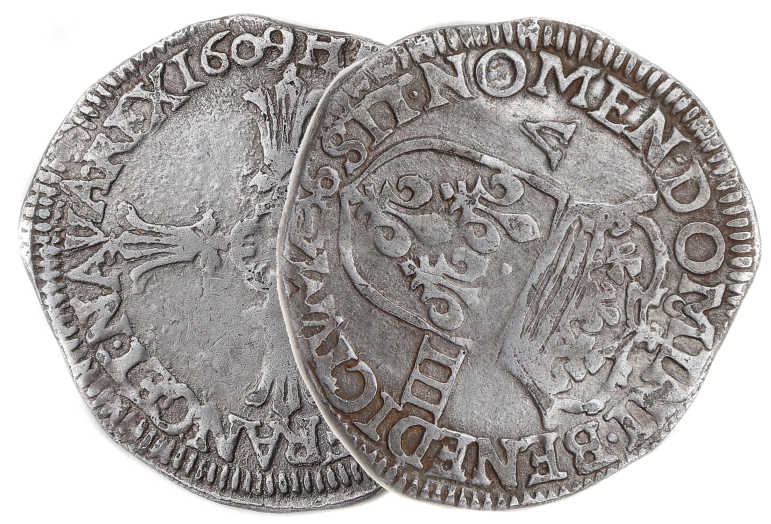Lettre d'atelier : 9 (au revers sous l'écu) Point secret : Non Millésime : 1609 Chiffre de frappe connu : 43