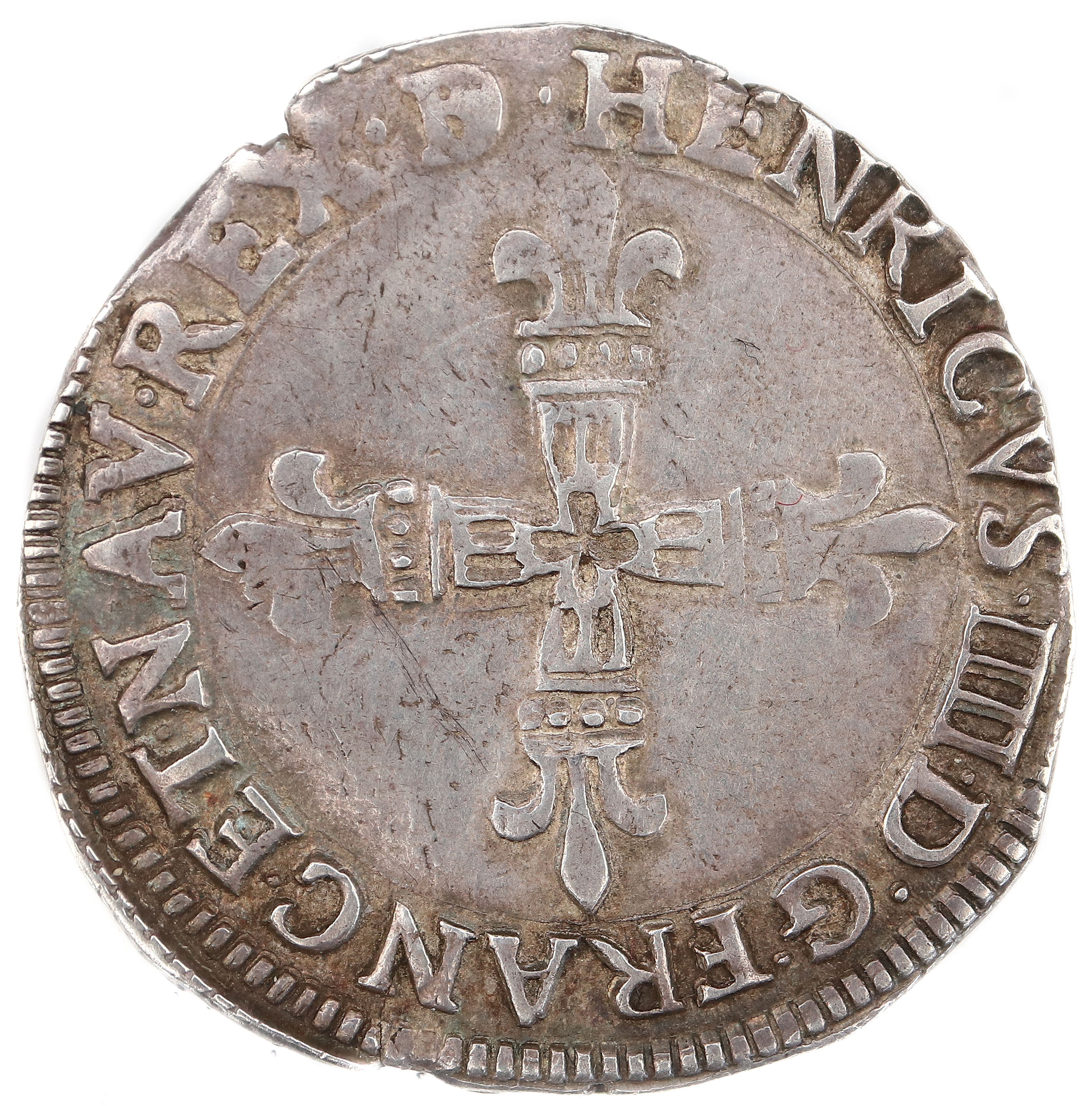 HENRICVS.IIII.D.G.FRANC.ET.NAV.REX(dif) Henri IIII par la grâce de Dieu roi de France et de Navarre. Croix batonnée et fleurdelisée |